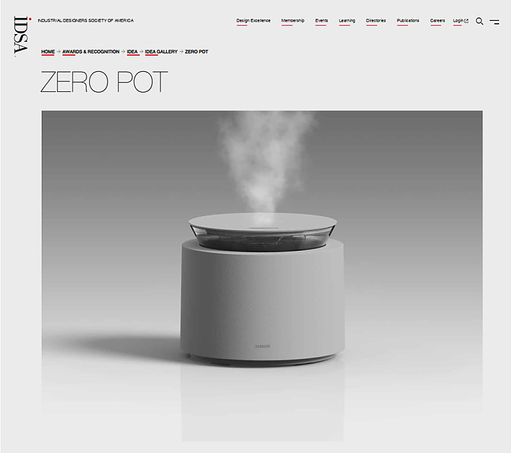 JDW에서 디자인한 Zero Pot이 미국 IDEA(The International Design Excellence Awards)에서 브론즈 프라이즈를 수상했습니다.