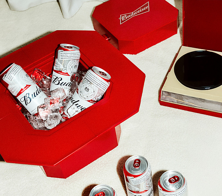 버드와이저 고유의 강렬한 레드 컬러와 정제된 면 처리로 브랜드의 에너지를 담아냈습니다.