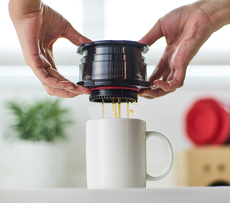 압축 시 12×12×7cm 크기로 휴대가 간편하며, 프레스 방식으로 추출한 신선한 커피를 언제 어디서나 즐길 수 있는 포터블 커피 메이커입니다.